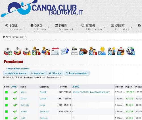 In futuro saranno a disposizione sistemi di prenotazione online dei corsi di canoa per rendere ancora più accattivante l'offerta della società sportiva.